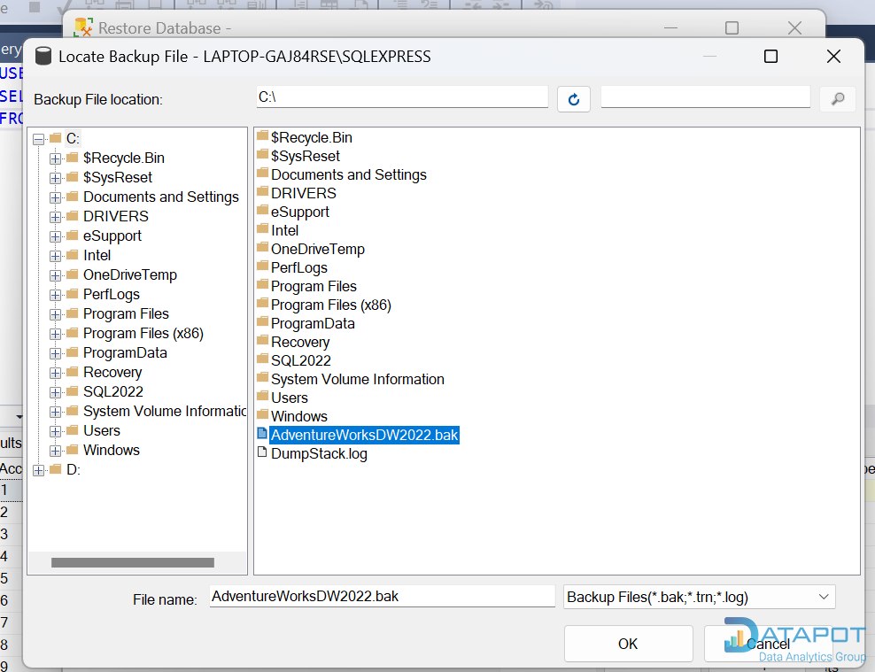 Hướng dẫn restore file .bak dataset AdventureWorksDW